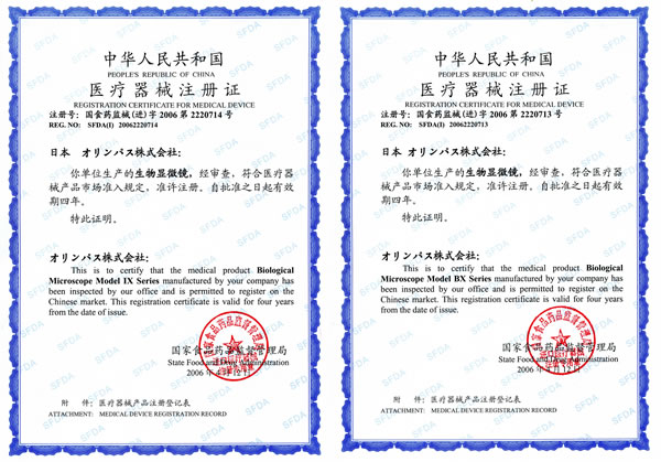 奧林巴斯生物顯微鏡獲SFDA醫療器械注冊證