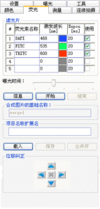 已經(jīng)保存的圖片,請(qǐng)?jiān)凇盁晒馑孛Q”中輸入“*IMG”即可調(diào)入圖片。然后單擊“開始”,就可以按照事先設(shè)定逐幅拍攝圖片,并以圖庫模式顯示依次在軟件下方,可以任意調(diào)整每張圖片的細(xì)節(jié),單擊“合成”,可以得到最佳的合成圖。在本此升級(jí)中,曝光時(shí)間的控制提供了兩種方式,一種是調(diào)節(jié)條式,另外特地增加了輸入式,此方式可以記憶上次設(shè)定的時(shí)間,以便用戶可以方便簡單地再現(xiàn)該熒光激發(fā)的細(xì)節(jié)。