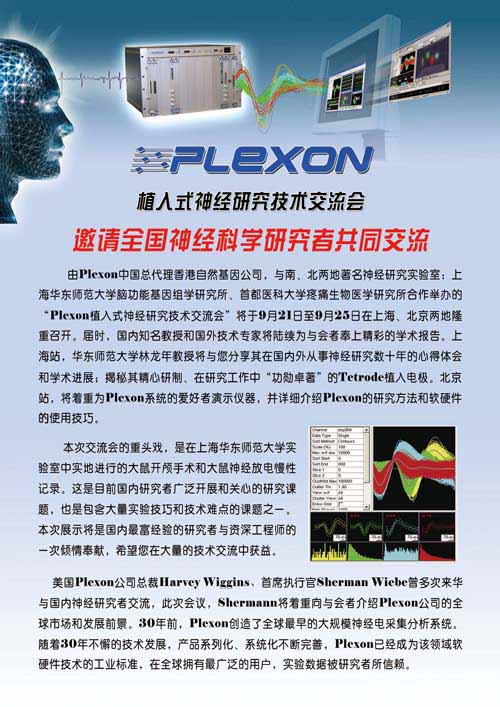 誠摯邀請您參加由香港自然基因生命科學有限公司、上海華東師范大學腦功能基因組學研究所、首都醫科大學疼痛生物學研究所共同舉辦的PLEXON 植入式神經研究技術交流會。