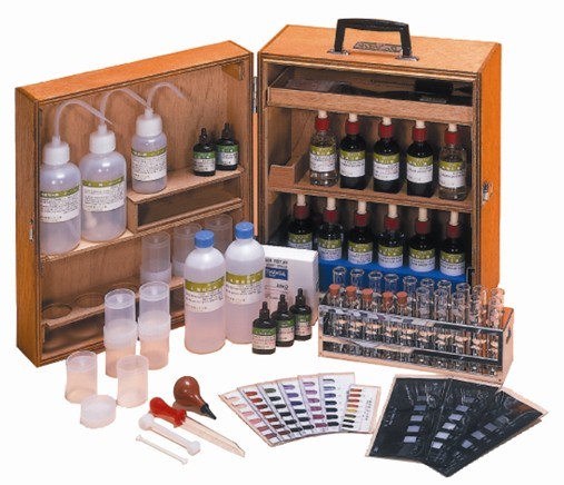 1.移動式小型土壤檢定室:檢定時所需要的器具與試劑全部收納在木制的手提箱內,方便移動。