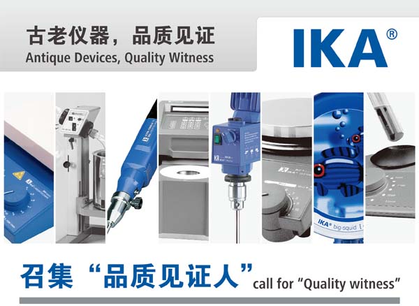 Dear IKA® customers, IKA® just celebrated her 1st 100-year anniversary, and is now starting the 2nd 100-year Journey. As IKA® loyal customers, have you still any antique devices from IKA® ? If so, you would have the opportunity to become IKA® “Quality witness”! Who can register: 1.Customers who purchased IKA® products before January 1, 2001 and are using these products daily can register to be an IKA® “Quality witness”! 2.Top five customers using an antique IKA® device over 10 years would become the Envoys of IKA® “ Quality witness”! The above mentioned antique IKA® devices can be either laboratory products or analytical ones. Awards: 1.All registered “ Quality Witness” will receive gifts, IKA certificate and regular IKA® newsletters. 2.Five Envoys of IKA “ Quality Witness” will receive: a. gift, IKA certificate plus regular IKA® newsletters;b. the right to exchange an IKA® antique device with nominated new products ( for more information about this please contact IKA® WORKS GUANGZHOU directly), and c. One year free service warranty (November 1, 2011 – October 31, 2012) How to register: Visit the official website of China www.ikaasia.com ; or call IKA® WORKS GUANGZHOU. Valid Territory: Greater China; South Korea