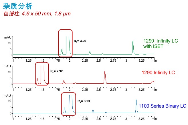 ISET 促進并方便了實驗室間 LC 方法的轉換。QA/QC 實驗室如今可以為未來做一項安全的投資了:因為實驗室在繼續運行傳統方法的同時還能夠充分利用1290 Infinity LC 的UHPLC 速度、分離度與靈敏度。現在,實驗室能夠通過 UHPLC 性能加快方法開發速度,并通過模擬目標系統對新方法進行微調,使方法更可靠地按照預期來運行。