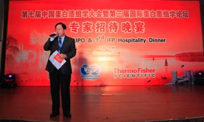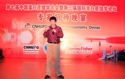晚宴上,細胞生物中國科學院賀福初院士為大家致祝酒辭,他提到本次會議的目的是交流蛋白質組學與轉化醫學的科學進步,并且促進全球合作和培養新一代的科學家。