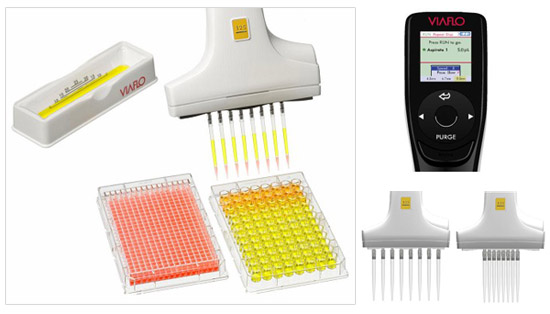 全部型號的Voyager™ 移液器都繼承了來自Viaflo® 移液器的Touch Wheel™控制器,其中包括直觀的編程系統和業界首個全彩色顯示屏。 此外,所有Voyager移液器的設計都可配合使用Viaflo Grip 吸頭。因此,實驗過程中不會再有吸頭松動、溢出或者脫落等狀況的出現,用戶可以輕松地完成移液過程。全部8個型號的 Voyager移液器的容積范圍為0.5 ul -1250ul 。這種獨一無二的設計可滿足多種實驗室容器的使用,如24孔、48孔、96孔和384孔的細胞培養板和分析盤、試管、樣品存儲凝膠盒和其他實驗室液體容器。