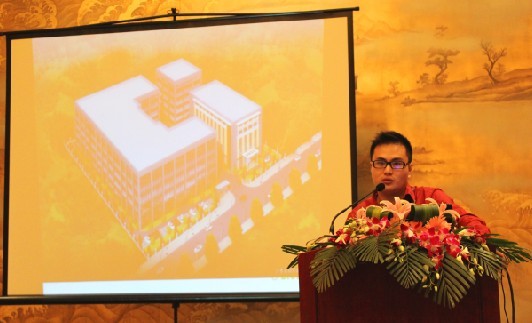 圖:潔特公司總經(jīng)理袁曄先生為嘉賓演示新廠房鳥瞰圖