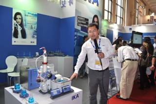 展會上,IKA除了展示攪拌分散系列產品及RV10旋轉蒸發儀等明星產品外,中試產品,年度新品也一同亮相,吸引了眾多參觀者駐足觀看。儀器信息網,中國化工儀器網,儀眾傳媒等多家行業網站及“實驗與分析”雜志就IKA本次參展及新產品做了專題采訪,IKA亞太區銷售總監Michael Liu先生,中國區銷售總監Kevin Xie先生,產品經理Patrick Jin先生分別介紹了部分新產品:帶電池便攜式磁力攪拌器Topolino Mobile, 新型試管分散機UTTD control,旋轉蒸發儀RV10 control, 多功能分散乳化機魔術實驗室Magic Lab, 反應釜 lab reactor,量熱儀C2000等等。現場觀眾在了解IKA產品的功能及運用的同時,對產品的設計及性能給予高度評價,部分用戶表示了合作意向。