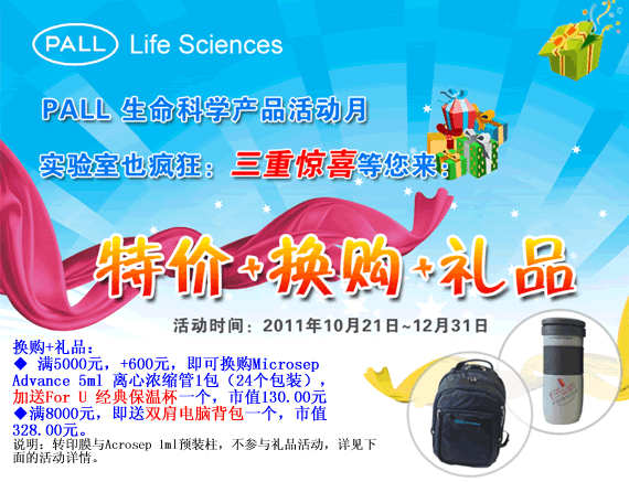 Pall 生命科學產品活動月大促銷:特價+換購+禮品