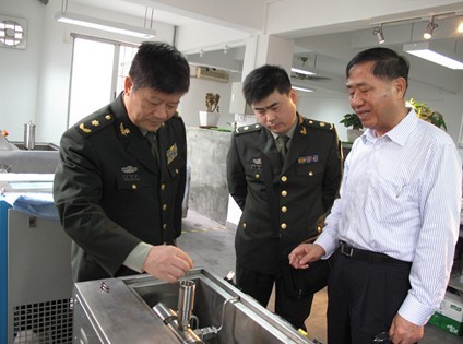 2011年11月18日,陳國需將軍蒞臨廣州聚能生物科技有限公司,參觀考察了JNBIO高壓納米均質(zhì)機。JNBIO的高壓納米均質(zhì)機的均質(zhì)全程可在4~80℃恒溫水浴中進行,確保了樣品對恒溫的特殊要求,設(shè)備的綜合性能優(yōu)于國內(nèi)外同類產(chǎn)品。