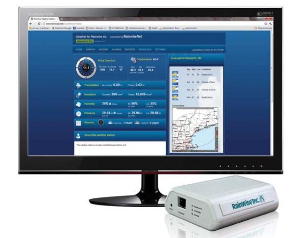 在線的云計算數據托管和門戶網站,RainwiseNetTM,從氣象站接受IP-100信息。RainwiseNeT提供實時和歷史數據,并且可以被私制和公開協議識別。多個氣象站觀測點可以歸納為農業或者教育方案。另外,IP-100可以通過一個XML API數據接口集成第三解決方案。