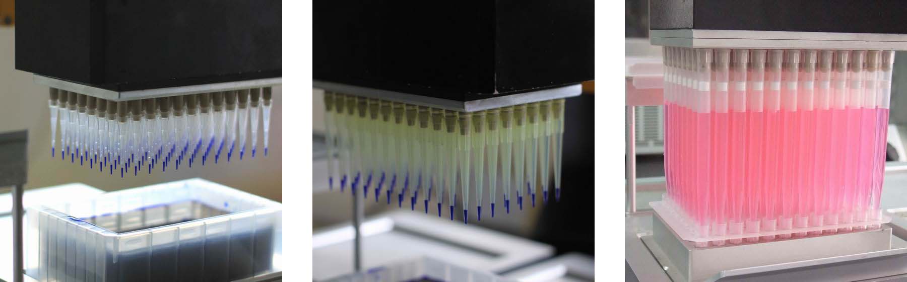 兩種不同量程的移液頭,1-200ul移液頭是世界首款采用通用吸頭的96道移液器,能適用于多數生物學測試中的液體處理;10-1000ul移液頭是市面上僅見的大體積高通量移液頭,非常適合核酸提取以及高通量分液用途。