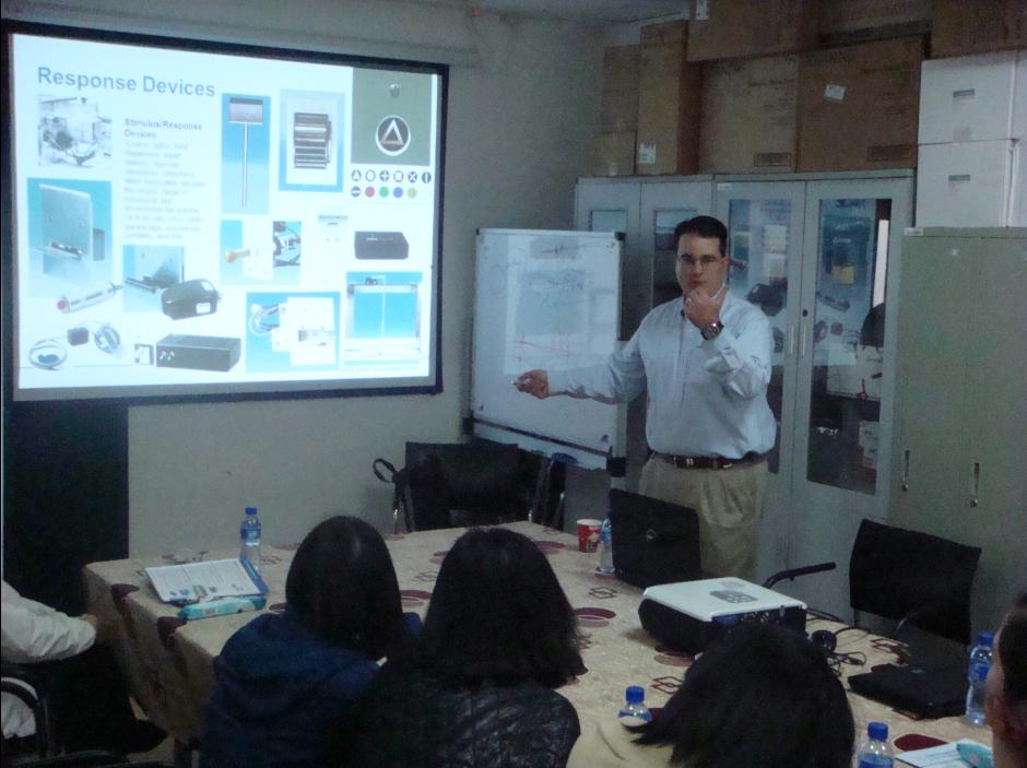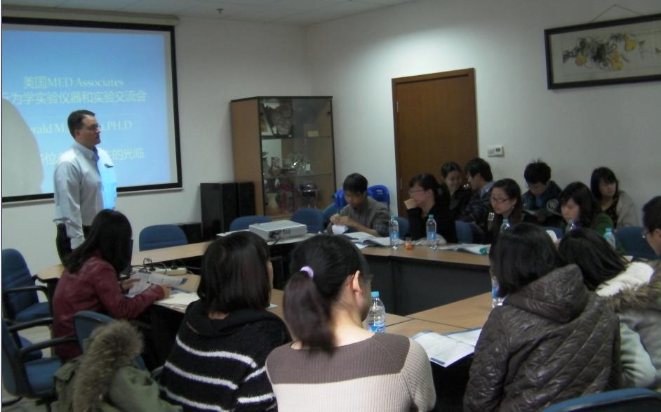 為回饋廣大客戶對上海優(yōu)耳儀器科技有限公司的支持,2012年3月26日至30日,上海優(yōu)耳儀器科技有限公司邀請美國Med Associates公司研究和發(fā)展部副總裁Gerry到中國,與動物行為學研究領域的客戶們就Med實驗設備的使用和Med行為設備在行為學研究領域的應用做了一次深度的面對面交流。交流會現(xiàn)場Gerry從Med公司的動物行為實驗設備自給藥系統(tǒng)、紅外恐懼系統(tǒng)、驚嚇系統(tǒng)、曠場系統(tǒng)、位置偏愛系統(tǒng)、八臂、T、Y迷宮、穿梭系統(tǒng)、水迷宮、超聲檢測系統(tǒng)等等所擁有產(chǎn)品優(yōu)勢,到儀器的使用、實驗的設置方案、實驗的數(shù)據(jù)處理及儀器的工作狀態(tài)、實驗方面等,提供了一次全方位現(xiàn)場指導和演示。