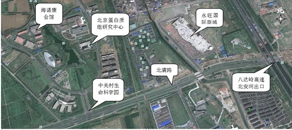 2、自駕車路線:市區經八達嶺高速---北安河出口(九號)下高速---辛莊橋下左轉向西---沿北清路直行第二個紅綠燈見中關村生命科學園---入園后約50米到丁字路口左轉約500米即到海諾康會館(丁字路口右轉200米到北京蛋白質組研究中心)。