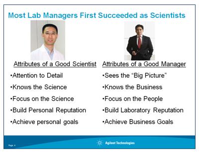 現(xiàn)代實(shí)驗(yàn)室的特質(zhì)要求實(shí)驗(yàn)室管理者也需完成從“科學(xué)家”到“實(shí)驗(yàn)室主管”的角色轉(zhuǎn)換。科學(xué)家主要關(guān)注科學(xué)問題及其細(xì)節(jié),關(guān)注的是個人榮譽(yù)和目標(biāo),而實(shí)驗(yàn)室主管則更多關(guān)注實(shí)驗(yàn)室全局及業(yè)務(wù)發(fā)展,因而實(shí)驗(yàn)室管理者所需具備的基本素質(zhì)也有了延伸和擴(kuò)展。擁有二十多年實(shí)驗(yàn)室管理經(jīng)驗(yàn)的安捷倫科技全球能源化工市場經(jīng)理Wayne Collins 博士認(rèn)為,“實(shí)驗(yàn)室主管首先必須是成功的科學(xué)家,但是作為實(shí)驗(yàn)室主管,他們還需具備良好的溝通技巧、豐富的財務(wù)知識及良好的員工行為管理能力等素質(zhì)。”