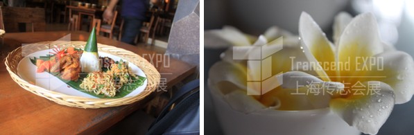 左圖:巴厘島的特色餐 右圖:巴厘島島花 -- 雞蛋花