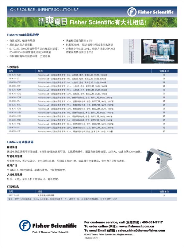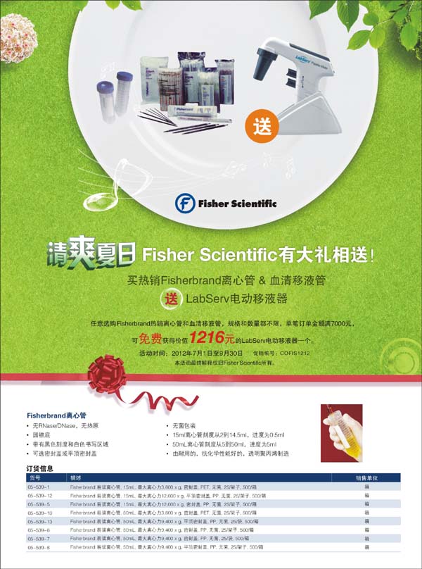 > 促銷 > 買Fisherbrand離心管、血清移液管送LabServ電動移液器