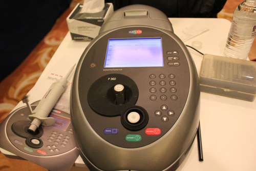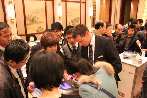會(huì)議現(xiàn)場(chǎng)工作人員帶來(lái)4臺(tái)NanophotometerTM超微量分光光度計(jì)樣機(jī)做演示,參會(huì)者親自體驗(yàn)到產(chǎn)品的易用性,很多用戶(hù)現(xiàn)場(chǎng)只需幾分鐘就輕松掌握了儀器的使用和操作。