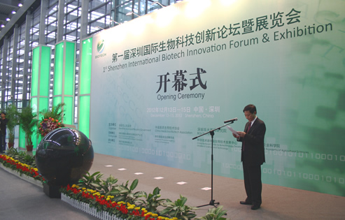 2012年12月13日上午,第一屆深圳國際生物科技創新論壇暨展覽會在深圳會展中心隆重開幕。開幕式由組委會副主任、深圳市政府副秘書長高國輝主持,組委會主任、深圳市政府副市長唐杰出席開幕式并宣布展會開幕,組委會副主任、中國醫藥生物技術協會理事長彭玉和深圳華大基因研究院理事長、中國科學院院士楊煥明分別致辭。國家發展改革委高技術產業司副司長任志武,商務部投資促進事務局副局長王旭,中國農科院副院長、中國工程院院士吳孔明,組委會副主任、深圳華大基因研究院院長汪建,以及有關省市、國內外高校、科研院所、組委會成員單位、參展企業的負責人和代表出席了開幕式。開幕式結束后,領導和嘉賓入場參觀了展覽。