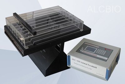 ALC-AT6型動物跑步機是上海奧爾科特生物科技有限公司近期推出的新型動物行為學研究儀器。該機可自動調節跑道速度和坡度,運行平穩,調控便捷,準確可靠,廣泛用于動物運動訓練、疲勞實驗、體能測試、以及藥物對動物運動協調性和抗疲勞效果等實驗研究。