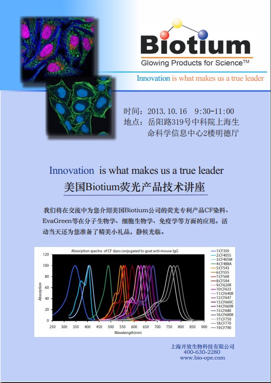 ----中科院上海生命科學信息中心美國Biotium熒光產品技術講座通知