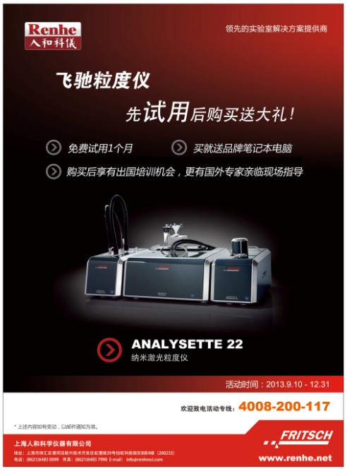 人和科儀為了感謝您一直以來的支持,特別在2013年9月-12月期間為您傾情獻(xiàn)上FRITSCH試用送大禮的活動(dòng)。