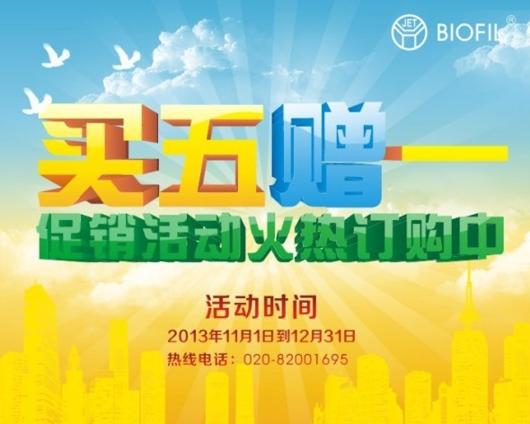 慶祝JET廣州潔特新廠投產---實驗耗材“買5贈1”促銷