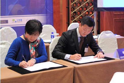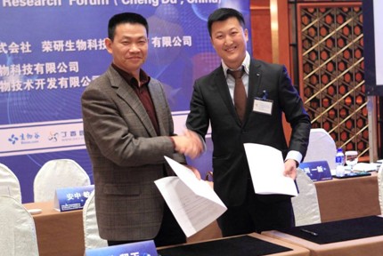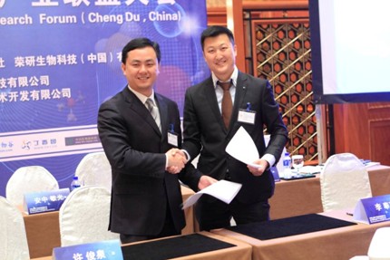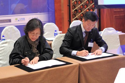 圖:北京藍譜生物技術開發有限公司總經理李奉京先生和錢淵主任簽署合作協議