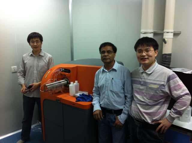 2014年3月18日,這是一個值得紀念的日子,廈門大學校園內春意盎然,綠草如茵,年輕的學子們歡快的奔跑著,此時廈門大學細胞應激生物學國家重點實驗室也在發生著一件令各位教授興奮的事情---中國首臺CyTOF 2質譜流式細胞儀正式安裝調試中。來自美國DVS Science公司工程師Foroz Alam、北京東勝創新生物科技有限公司分子影像部CyTOF工程師陳曉安、陳新蕾親臨現場指導安裝。