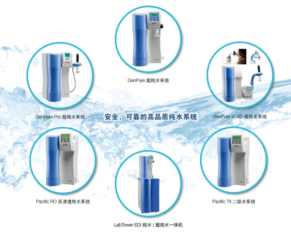 賽默飛科技2012年推出了新的超純水系統GenPure,性能更加穩定,有著革命性的設計,最新的水純化技術,舒適的操作,更重要的是經濟實惠的運行成本!每升只需花費您¥1.25就能得到 18.2MΩ-cm,內毒素 < 0.001EU/ml, DNase > 0.01ng/ml, RNase < 4pg/μl , 細菌含量< 1CFU/ml的高品質超純水。