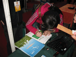 用戶在基因公司展臺前饒有興趣地翻閱產品資料 |
