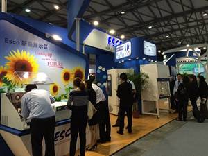 此次展臺的設計我們別具一格地選擇了簡約風尚。獨特的造型,簡約的外形,以及Esco經典色彩的搭配,無不使我們的展位大放異彩!