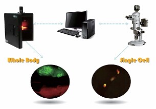 活體成像技術是腫瘤生長觀察和遷移監控的理想方法,可以實現對同一生物個體的長時間示蹤,提高了實驗數據的可比性,提供了最為直接的生物個體水平的證據。