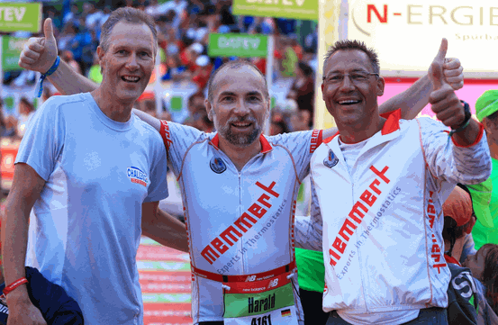 相較而言,Memmert的延后出發運動員就稍稍運氣了些,因為他們可以組團分段接力完成比賽,累計成績。跟去年一樣,許多Memmert員工抓住機會再次集體參賽。