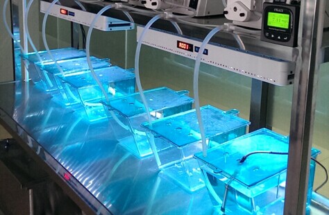 魚類流水試驗系統(tǒng)是模擬魚類生長環(huán)境,展開相關(guān)魚類試驗,評價受試物對魚類可能產(chǎn)生的影響,以暴露效應(yīng)評估受試物的危害性。通過對染毒水槽中的魚所處的溫度、水流、溶解氧、藥物濃度、光照進(jìn)行設(shè)置調(diào)節(jié)并實時檢測,真實模擬化學(xué)物質(zhì)暴露的實際自然環(huán)境,在流水式與靜態(tài)之間進(jìn)行自由調(diào)節(jié)。同時,能夠進(jìn)行對水流基本開放的流水式河流中魚類的動態(tài)急性與慢性毒性試驗測試,以及相關(guān)流水式水環(huán)境中魚類積累或降解試驗研究。