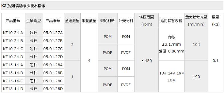 ● KZ10、KZ15系列蠕動泵泵頭主要應用于環保檢測、醫療體外診斷等儀器設備配套。