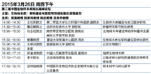 一年一度的中國醫(yī)藥生物技術(shù)協(xié)會組織生物樣本庫分會年會:第七屆中國生物樣本庫標準化建設(shè)與應(yīng)用研討會暨第二屆中國生物樣本庫院長高峰論壇首屆中美臨床轉(zhuǎn)化醫(yī)學(xué)論壇將于2015 年3月26 日—3 月28 日在中國•上海隆重召開。本次會議由中國醫(yī)藥生物技術(shù)協(xié)會、中國醫(yī)學(xué)科學(xué)院主辦,中國醫(yī)藥生物技術(shù)協(xié)會組織生物樣本庫分會、全國生物樣本標準化技術(shù)委員會(籌)、生物芯片上海國家工程研究中心、復(fù)旦大學(xué)附屬中山醫(yī)院、復(fù)旦大學(xué)附屬腫瘤醫(yī)院、 同濟大學(xué)附屬同濟醫(yī)院等承辦。