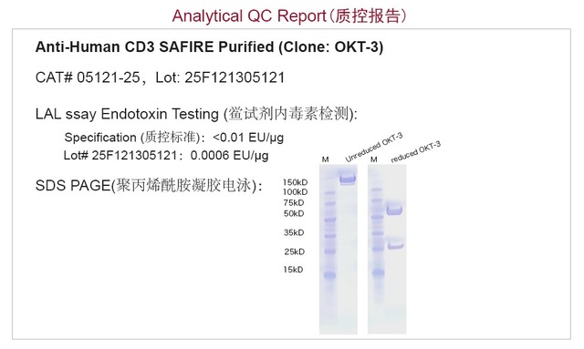 該內(nèi)毒素水平為同類產(chǎn)品中最低,批號(hào)25F121305121的人CD3功能性抗體(克隆號(hào):