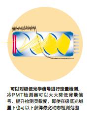 可以對極低光學信號進行定量檢測,冷PMT檢測器可以大大降低背景信號、提升檢測靈敏度,即使在極低光能量下也可以下獲得最寬動態檢測范圍。