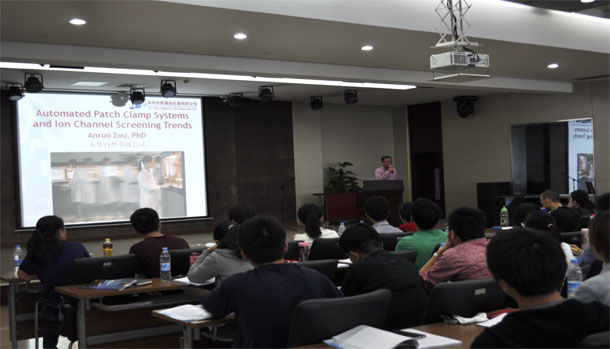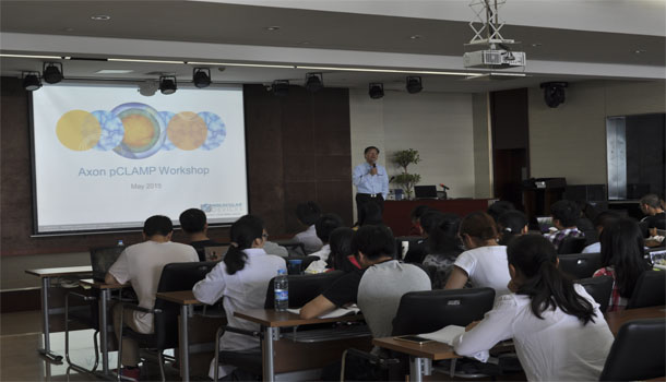 2015年5月13日至15日,由東樂自然基因生命科學公司與江蘇省中醫藥研究院聯合承辦的第十一屆AXON膜片鉗技術初級培訓班在江蘇省中醫藥研究院十六樓報告廳成功舉行。本屆膜片鉗培訓班我公司邀請了美國MD公司的高級技術工程師Jeffrey Tang博士、膜片鉗技術權威專家劉振偉教授、華東師范大學膜片鉗技術專家戴躍教授和電生理界知名專家Anruo Zou教授共同主講。