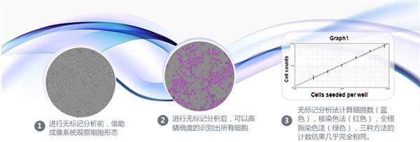 基于細胞成像的分析技術一般需要使用熒光染料進行標記,一些熒光標記可能對活細胞具有毒性或者只能用于固定過的細胞進行染色。無標記細胞分析技術使得研究者既無需耗時耗力的染色流程也無需擔心染料對正常細胞活力的影響,就可以計算出細胞數目和細胞匯合度,第一時間獲得量化的細胞增殖及健康情況的數據。