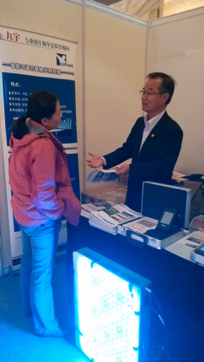 北京九宇金泰攜手植物光源領導品牌——臺灣Hipoint參加此次展覽。為表達對本次大會的高度重視,Hipoint的張簡總經理和九宇金泰銷售總監滕家波老師都親臨展會現場,并同多位與會的植物學專家親密交談,就植物研究所需的光源系統、培養箱、栽培室等作了深度溝通。力在為中國植物學研究提供更精準、節能、環保、科學的儀器設備,更好地服務于植物學一線研究者!