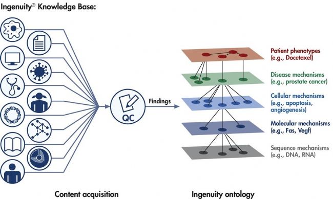 IPA是QIAGEN公司下Ingenuity Pathway Analysis分析平臺, 該平臺是一個基于后臺高度結構化的Ingenuity Knowledge Based的強大數據庫。它歷經15年的海量投入;擁有500名phD閱讀文獻;對700種權威雜志全文閱讀,3000種雜志摘要閱讀,它存儲了510萬以上的生物實驗發現信息,130萬種互作信息,3萬種以上分子信息;它構建了完整的功能疾病分類數據庫,800種信號通路、代謝通路;與公共數據庫進行全面合作,并保持每周更新一次。它為眾多以發現、創造為己任的科研工作者們提供了及時、準確的生物信息數據。