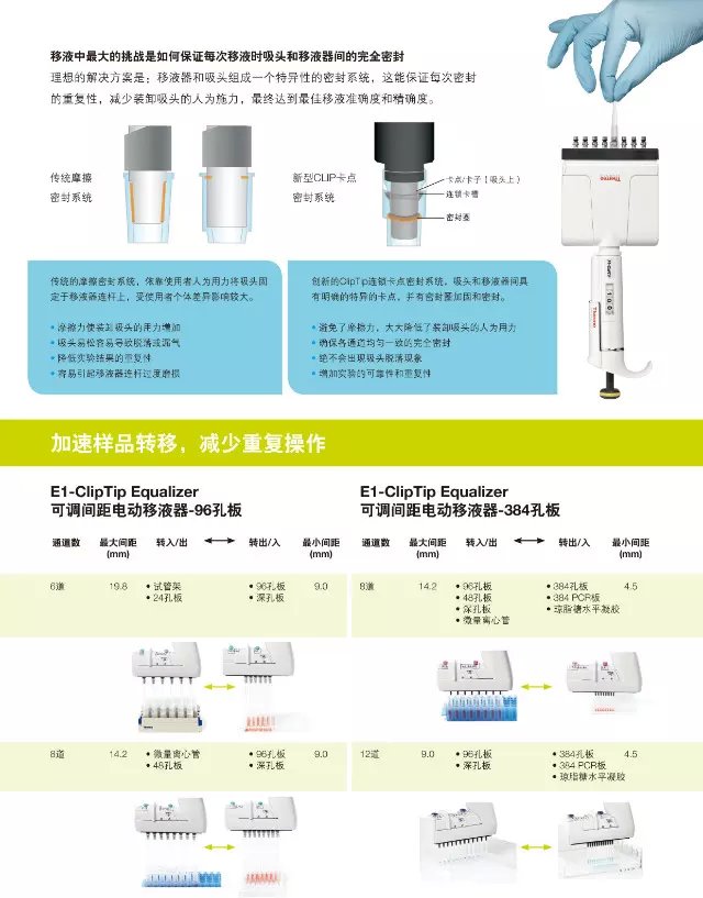 • 凡購買1只E1-ClipTip多道(8/12道)電動移液器,即可獲贈4箱適配的數量相當的ClipTip吸頭*