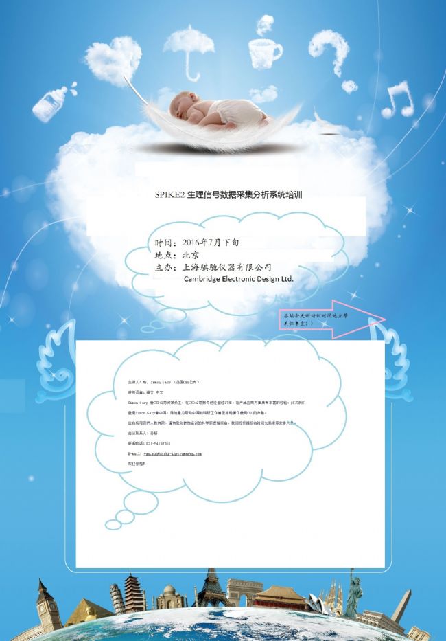 第11期Spike2應用培訓班將于2016年7月下旬于北京舉辦,歷時3天,屆時將詳細介紹Spike2數據采集和數據分析,幫助各用戶解決所遇到的困難。主講人Simon Gary是CED公司資深員工,在CED公司服務已經超過17年,在產品應用方面具有豐富的經驗,此次我們邀請Simon Gary來中國,目的是為了幫助中國的科研工作者更好的操作CED的產品。應會場可容納人數有限,請有意向參加培訓的科學家提前報名,我們將根據報名先后順序安排。進一步通知詳情將隨后發出。