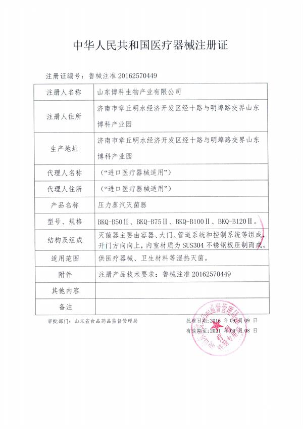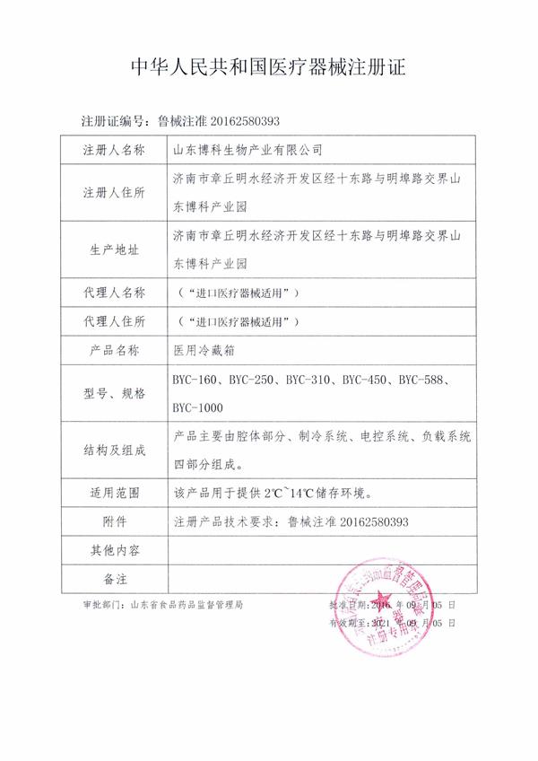 近日,山東省食品藥品監督管理局向博科頒發了醫用冷藏箱、壓力蒸汽滅菌器醫療器械注冊證(醫用冷藏箱:注冊證編號:魯械標準20162580393;壓力蒸汽滅菌器:注冊證編號:魯械標準20162570449)。