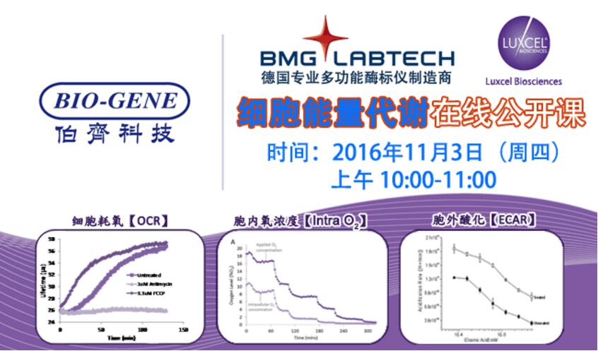 掃描右方二維碼關注我們的官方微信,輸入:公開課,獲取報名鏈接! 向微信公眾號輸入:細胞代謝,可觀看相關視頻! 背景內容 細胞能量代謝近年來在科研界非常火熱。因為細胞代謝的改變和癌癥、心血管疾病、神經退行性疾病、肥胖、糖尿病及干細胞等多個領域息息相關。然而,細胞代謝更是藥篩領域的一個重要指標,因傳統的MTT和ATP檢測未必能完整地反映藥物對細胞代謝的影響。同時越來越多的研究結果揭示,細胞內氧含量水平對細胞的生理狀態,信號傳導以及細胞對藥物處理的應激反應有顯著的影響。細胞耗氧率(OCR)、胞外酸化率(ECAR)和胞內氧濃度(Intra O2)等能量代謝指標,結合傳統指標如ATP或存活率等可讓研究人員更深入了解細胞狀態或運作機制。以往細胞代謝的檢測技術不好掌握,一些專門檢測代謝的方法,實驗重復性低且只能檢測有限指標,尤其是細胞內氧濃度檢測更是難以實現,多種限制往往使相關研究人員陷入困境。在此,伯齊科技有限公司利用獨家代理的德國BMG細胞能量檢測平臺,結合Luxcel細胞能量代謝檢測技術,為您重點分享細胞能量代謝檢測解決方案及進行實驗演示和技術解答。 演講者信息 Ian Hayes 博士 應用科學家 Luxcel Biosciences公司 Luxcel Biosciences公司2002年成立于愛爾蘭,專業細胞代謝分析檢測試劑生產商。為客戶提供直接簡便的細胞代謝檢測工具,提高檢測速度和準確性,減少研發的成本。 愛爾蘭LUXCEL試劑廠商與德國BMG LABTECH酶標儀廠商從去年開始攜手合作,共同研發推動多指標細胞能量代謝研究。LUXCEL細胞能量代謝試劑搭配德國BMG LABTECH的酶標儀和其強大的數據處理軟件MARS,僅需簡單的3步操作,您就可以輕松地獲得細胞能量代謝分析數據結果!讓繁瑣的實驗操作和數據處理從此變浮云! LUXCEL試劑的研發是在BMG LABTECH的酶標儀上進行的,因為BMG酶標儀有非常好的靈敏度和穩定性。LUXCEL推薦使用BMG LABTECH的CLARIOstar和FLUOstar Omega多功能酶標儀進行細胞能量代謝研究。因為CLARIOstar具有超級光柵LVF技術,比現有市場的傳統四光柵靈敏度更高,突破了傳統濾光片酶標儀不能進行熒光全光譜掃描以及傳統光柵型酶標儀帶寬窄及帶寬不靈活的各種缺點。而FLUOstar Omega在保證高靈敏度的同時讓您的預算更游刃有余。兩款酶標儀的型號都可選配大氣控制模塊,使用戶可以進一步研究低氧,缺氧環境下的細胞代謝情況。
