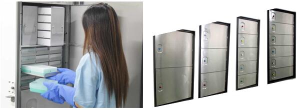 2、內門采用20mmPU板絕熱并進行顏色編碼,清晰標志,分類保存。為確保最高的質量標準,內腔為不銹鋼材質。支架、外門內部和內門均為不銹鋼材質;