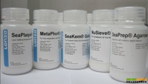 是一種高凝膠強度,低EEO,標準膠凝溫度的瓊脂糖。這種遺傳學術級別(Genetic Technology Grade,GTG)瓊脂糖最適于脈沖場凝膠電泳法(pulsed field gel electrophoresis,PFGE)快速分辨Mb(megabase))50kb-10Mb)DNA和常規電泳方法分辨1-50kb的DNA與PCR產物。因其低EEO特性,SeaKem Gold瓊脂糖中的DNA電泳遷移速度要顯著的高于常規瓊脂糖凝膠。PFGE的跑膠時間依使用的緩沖液和瓊脂糖濃度的不同可減少至原電泳時間的50%。因其高凝膠強度,即使是使用低濃度(0.5%)的SeaKem Gold瓊脂糖凝膠,操作處理依然很方便,從而允許在常規電泳中分離更大的DNA片斷并減少PFGE中的DNA分離的耗時。