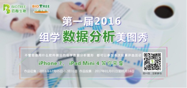 論是基因組學、轉錄組學、蛋白質組學、代謝組學或是脂質組學,組學的數據收集是科研人員面臨的一個問題,但肯定不是最大問題。大多數人都同意,更大的問題是弄清楚組學數據集到底意味著什么。一年辛苦耕耘,在此2016年末之際,盡管組學數據分析仍存在巨大的瓶頸,但正所謂“高手在民間”,BIOTREE特此舉辦“第一屆2016組學數據分析美圖秀”的活動,望各位生物達人熱烈參與,相互切磋,共同進步!
