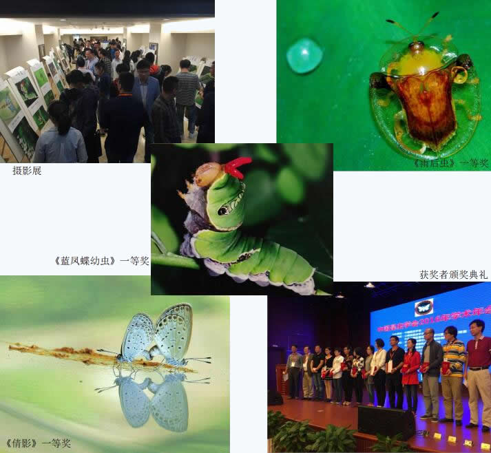 本次學術年會,除了進行各種專題討論會以外,大會主持方還舉行了全國昆蟲攝影展,共有來自全國20多個省市自治區的昆蟲攝影作品1639幅,經過評審,評出一等獎12幅、二等獎17幅、三等獎29幅。另外還評出專項獎(組委會特別獎)2名、優秀組織獎3名及特殊貢獻獎3名。與會嘉賓和學會領導為獲獎者頒發了證書和獎金,并合影留念。