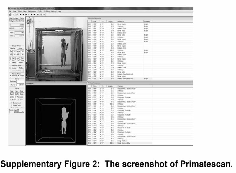 通過與吉安得爾合作,本文首次在國內(nèi)將非人靈長類動物行為自動分析系統(tǒng)(PrimateScan, CleverSys Inc,美國)應(yīng)用于模型的術(shù)后行為學(xué)評價。在動物清醒狀態(tài)下持續(xù)采集的精細行為學(xué)大數(shù)據(jù),為該非人靈長類模型在疾病機制和新藥評價的應(yīng)用上提供了客觀、可靠、高效的全新方法。